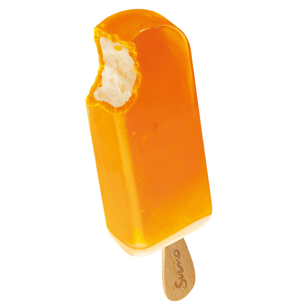 Vanilla-flavored ice cream covered with tropical fruit preparation